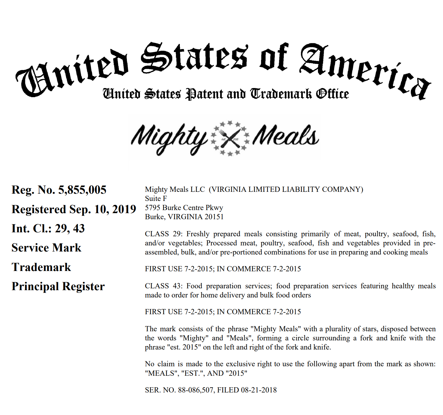 Geoff: I, personally, have been a client of MightyMeals for about two years, and I really rely on my weekly order! One day, when I was picking up my meals, I happened to think about whether or not MightyMeals has a trademark to protect their branding. I gave MightyMeals co-founder, Dan Graziano, a call, and told him that I am a loyal customer who happens to be a patent attorney. I explained how protecting the MightyMeals logo and branding is crucial as the company continues to expand, since those two things are the most valuable assets you have. If we were alerted that another company was operating under the name MightyMeals, McGinn would send them a cease and desist letter, asking them to stop selling the product under that name. MightyMeals would have to sign the letter, and McGinn would mail it and wait for the company to either stop or respond. Now that MightyMeals owns the trademark, they are open to many more options, including the rights to the domain name, “MightyMeals.com.” The issue of MightyMeals, one word, versus Mighty Meals, two words, comes down to reasonable equivalence; you have to ask the question, “would a consumer confuse my goods with their goods?[/vc_column_text][/vc_column_inner][/vc_row_inner][vc_row_inner][vc_column_inner][vc_column_text]